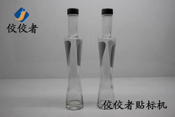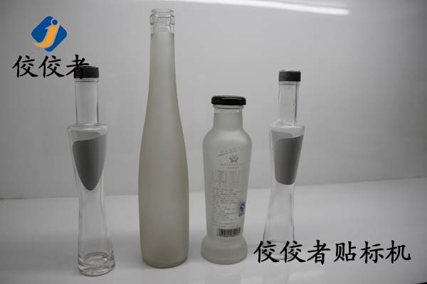 再看第三幅圖,第三幅圖中有一個比較高的壓光瓶。貼標位置一般在最下方的瓶肚上,瓶肚基本上無大幅度,如果貼兩張標簽即正背標,可以選擇我司的全自動定位立式圓瓶貼標機,也可以選擇使用全自動雙側面貼標機,相對這款產品,前者的速度相比后者速度要慢一倍,但是價格實惠,針對客戶的要求來做不通選擇。如果是單張標簽占圓周面積一般以上則建議使用定位立式圓瓶貼標機。