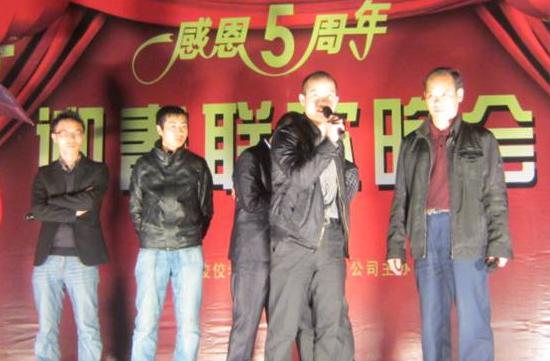 五周年年歡晚會,我們在廠內(nèi)搭建了舞臺,辦了酒宴,宴請了客戶及供應(yīng)商過來參加。我們的節(jié)目多姿多彩。還有豐富獎品禮品的抽獎環(huán)節(jié)。