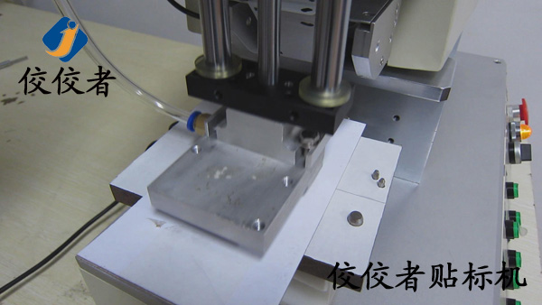 正常操作的時(shí)候工作人員將需要貼標(biāo)的手機(jī)殼放在方便拿取的位置以增加貼標(biāo)的效率,此時(shí)有一個(gè)步驟在圖片中沒(méi)有展示出來(lái),那就是接通電源之后,需要做的就是將手機(jī)殼放在治具(固定產(chǎn)品用的模具,可根據(jù)產(chǎn)品的不同進(jìn)行定制)中.然后踩腳踏,此時(shí)貼標(biāo)過(guò)程已經(jīng)完成.看似只有一秒鐘的時(shí)間,在這個(gè)時(shí)間中,機(jī)器進(jìn)行了一系列的工作.吸標(biāo)頭向下垂直運(yùn)動(dòng)到指定位置,標(biāo)簽剝離機(jī)構(gòu)同時(shí)出標(biāo),當(dāng)標(biāo)簽出到1/2處時(shí),吸氣裝置啟動(dòng),吸住標(biāo)簽,待標(biāo)簽完全剝離,標(biāo)簽也完全被吸在貼標(biāo)頭上了,此時(shí)貼標(biāo)頭向下貼標(biāo),到指定位置,這里說(shuō)的就是產(chǎn)品放置的位置了.至此,貼標(biāo)過(guò)程就已經(jīng)完成了。(操作過(guò)程:放產(chǎn)品—>貼標(biāo)并覆標(biāo)(設(shè)備自動(dòng)實(shí)現(xiàn))—>取出已貼標(biāo)產(chǎn)品。)如下圖: