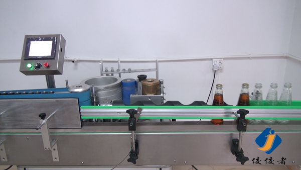 將瓶子放到上糊貼標(biāo)機(jī)的傳送帶上,按顯示屏上的開始按鈕,機(jī)器便開始工作了,瓶子排列在傳送帶上,由于后面貼標(biāo)位置的出標(biāo)是有一定頻率的,人工估算又非常不準(zhǔn)確,那么如何才能配合這個出標(biāo)頻率呢?請先看下圖: