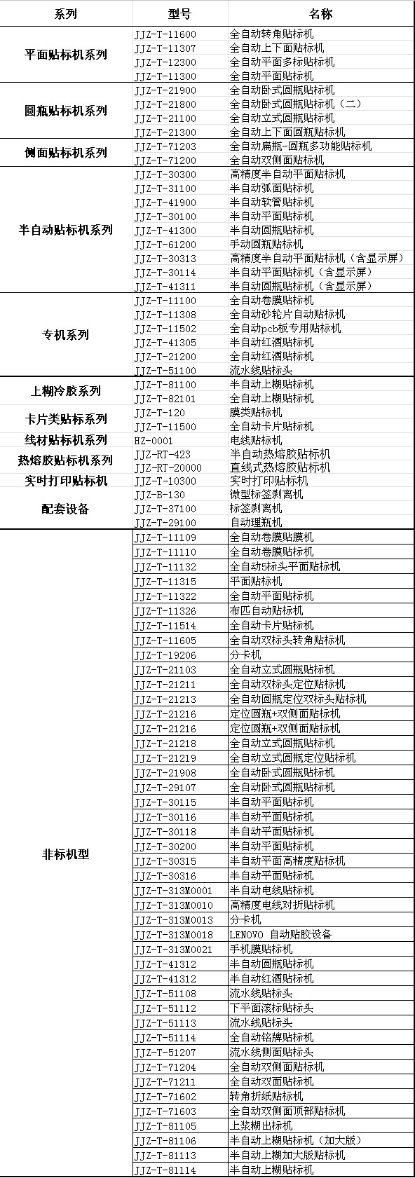 于2013年3月15號公司成功研發套標機5臺.并正式投入市場進行推廣銷售.下圖是公司對應套標機的型號與產品名稱.