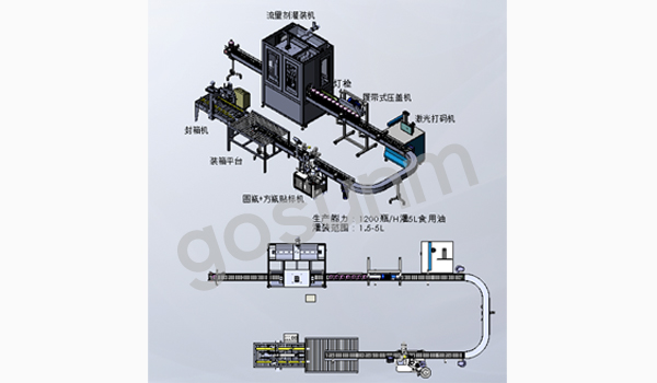 整線說明:灌裝食用油1.5-5L,生產能力1200桶/H(相對5L)