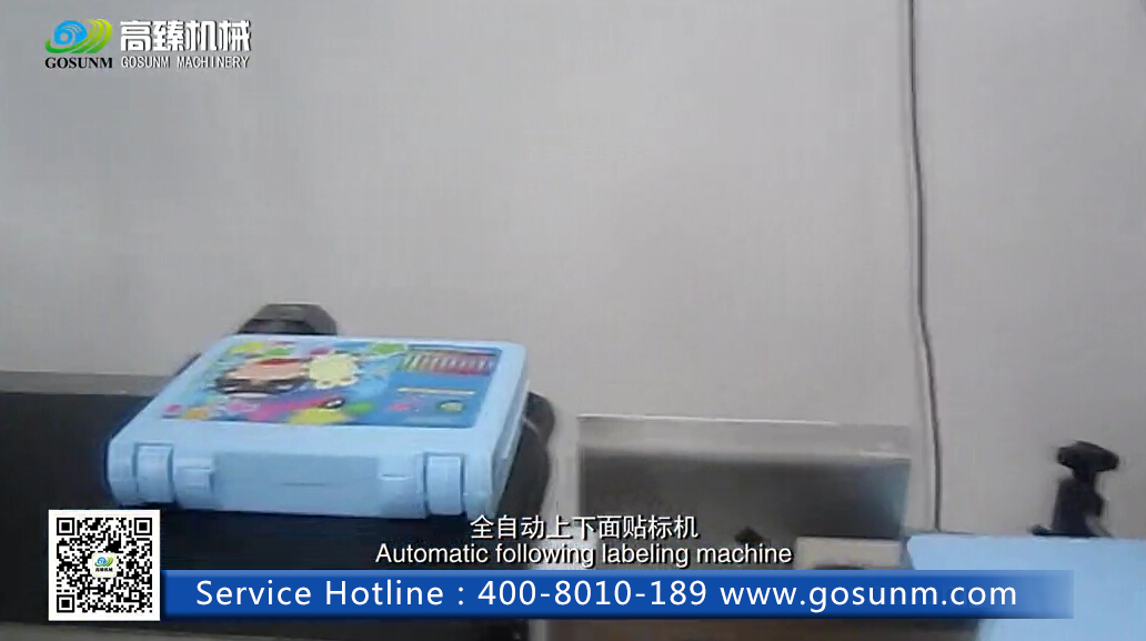 全自動上下面貼標機屬于平面貼標機系列,適用于規則性長方形、正方形物體的上下面貼標,可一次性貼上下面兩種標簽,如盒子上下面貼標;組合機型可單獨分開,轉換成兩臺通用型平面貼標機。下面我們用平常經?吹降牟使P文具盒來介紹該機器的操作過程吧。