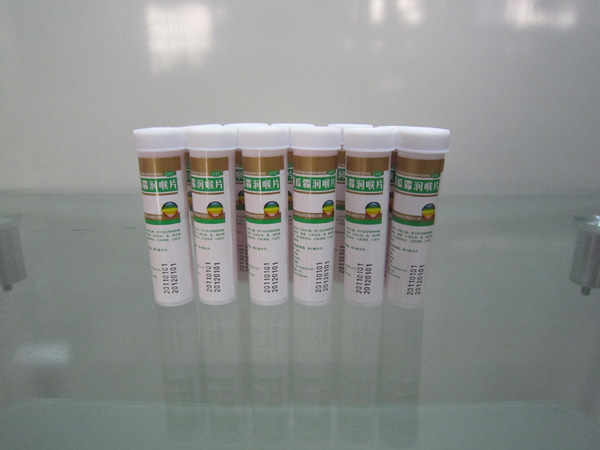 上圖是農(nóng)藥瓶貼標機對藥品瓶潤喉片進行貼標后的樣品圖片。