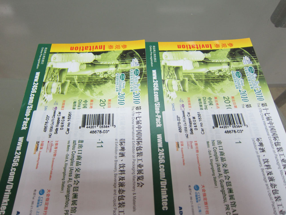 上圖是商標貼標機對參觀卷進行防偽標簽貼標的樣品。