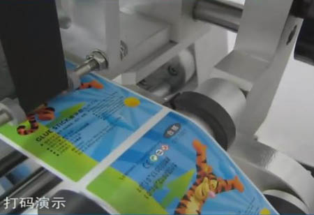 對產品一邊進行貼標,一邊進行打印文字。已經是一個很容易就能實現的功能了。實現這個即時打印功能的東東,叫打碼機。一般的標準貼標設備上都是可以進行選配這個打碼機的。也就是說,幾乎所有的標準設備都可以進行即時打印功能。我公司有一款典型的即時打印貼標設備:全自動臥式圓瓶貼標機。