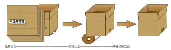 紙箱成型——————————————————膠紙封底———————————開箱封底完成