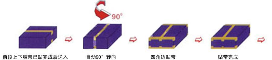 ◆ 本套系列是以單機組合配套,單機型四角邊封箱系列,可配合其他“一”字型貼帶機型聯機配套,組合成(工字型自動封箱)作業
